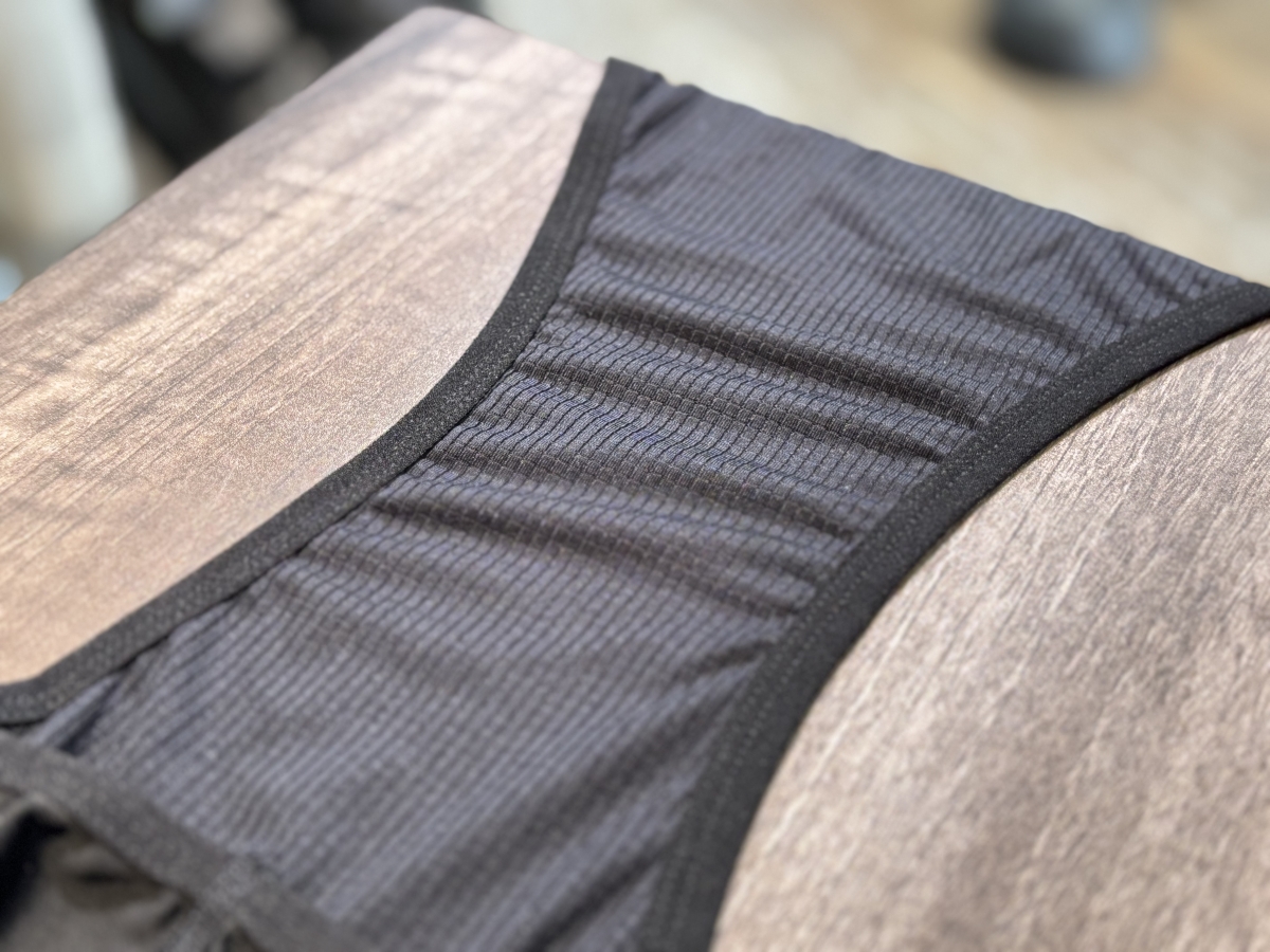 メッシュ生地は通気性に優れているので掻いた汗を素早く外へ逃がし、汗冷えのリスクを減らしてくれています。