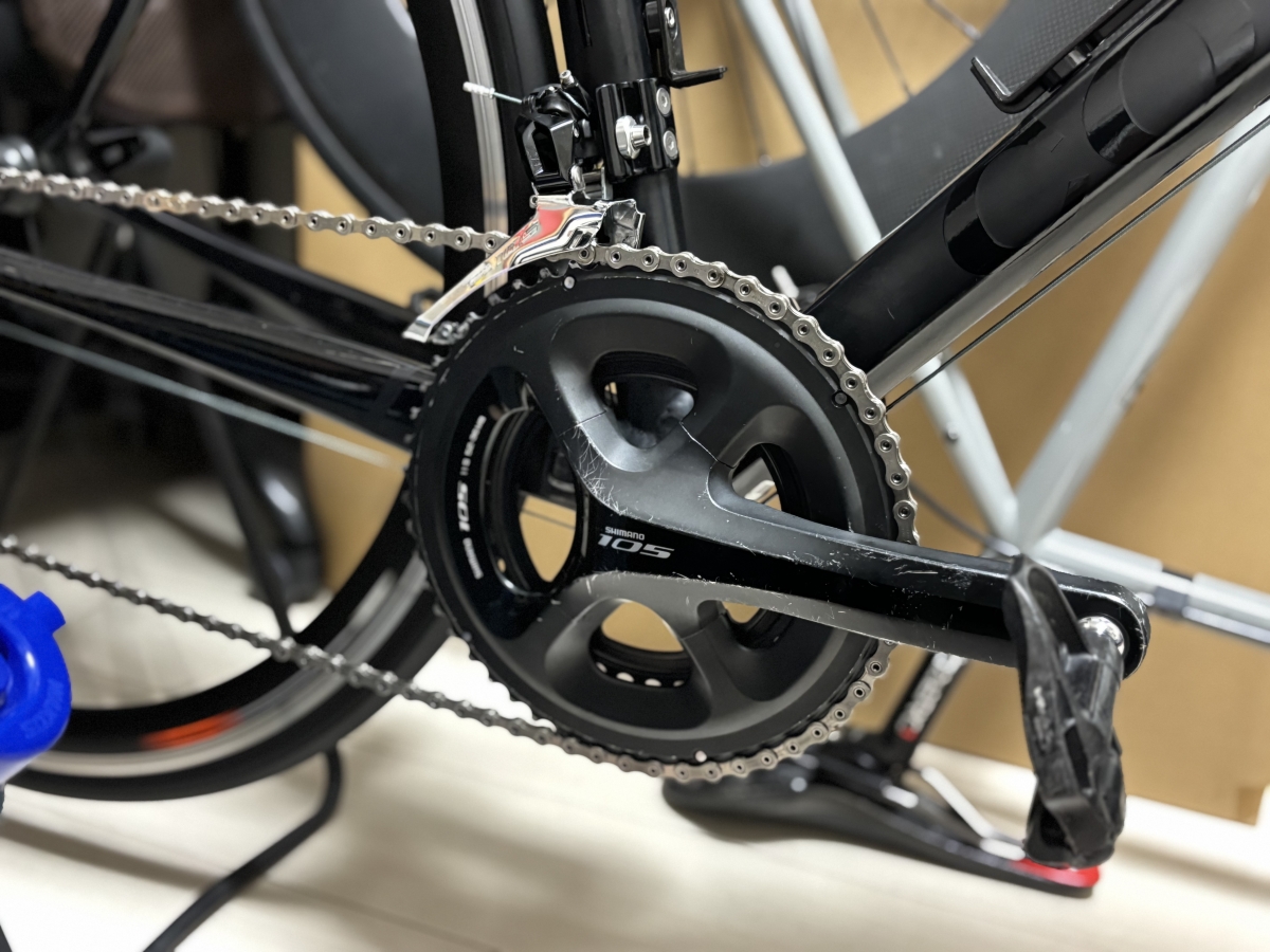 色々付ける前にチェーンクリーナー等を使って清掃したのでめちゃくちゃ光ってますね。テンション上がります。