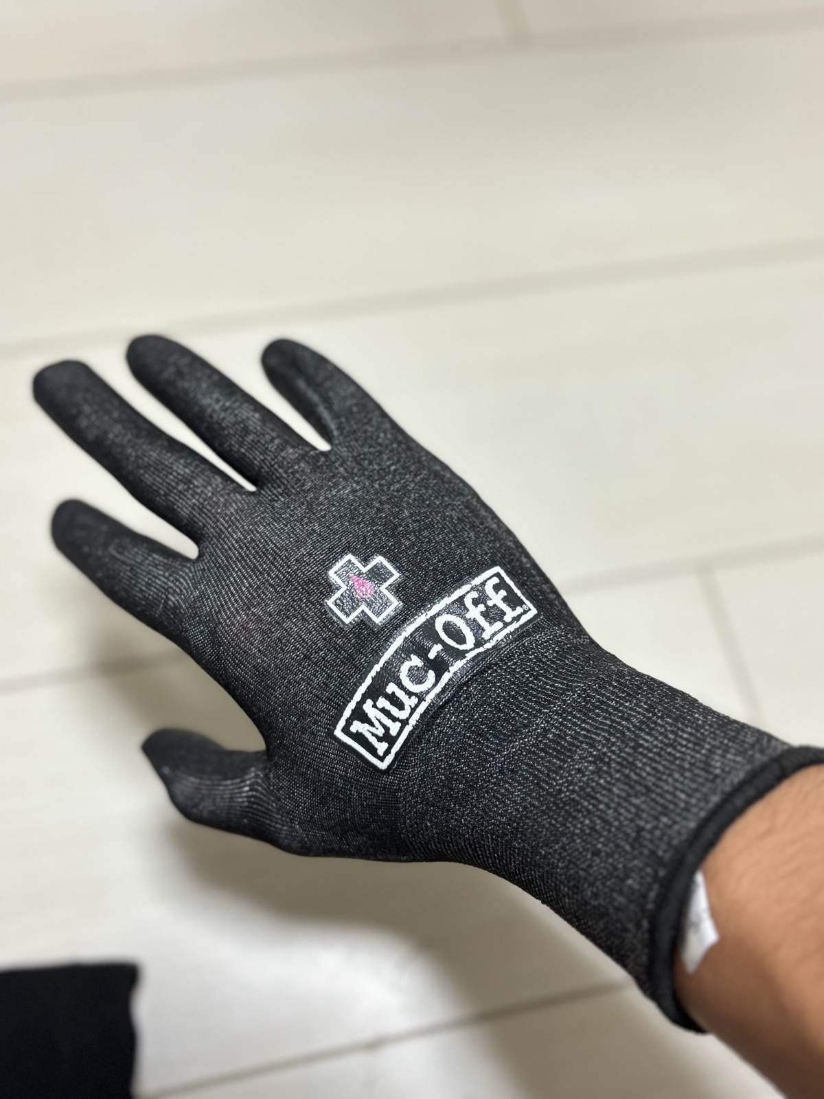全然コンビニとかで同じようなグローブは売っていますが、これはグローブの生地がすごく薄いので素手と同じ感覚で整備が出来て便利です。