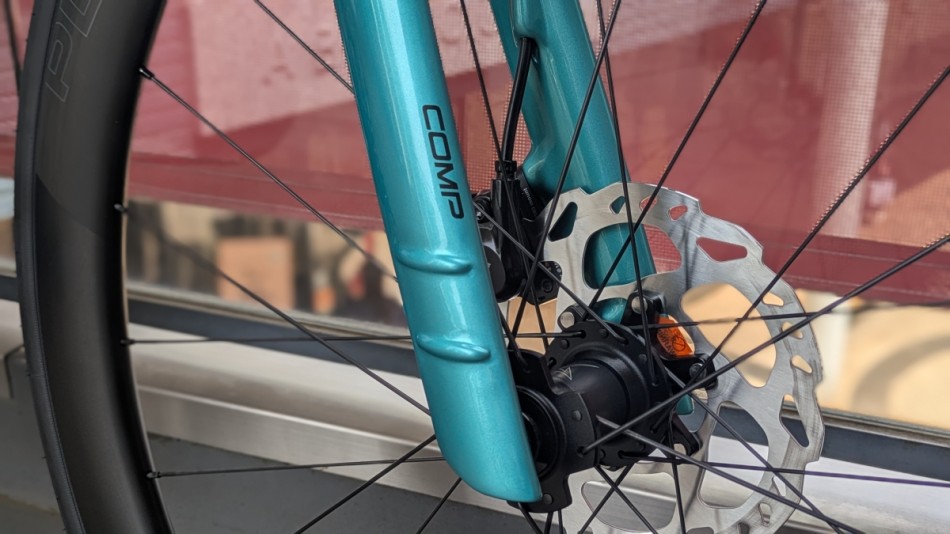 まず走行性能ですが、これに関してはサードグレードですがかなり高次元の走りを体感できると思います。平地では軽く漕いでいても35キロほどで巡行ができサイクリングロードなどでは気持ちよく走ることが出来ます。登りに関しては6~7%くらいまでならフレーム剛性もかなり高いのでスイスイ上ってくれます。ただ、10%くらいになってくると車体重量がそこそこあるので少し重さを感じます。これに関しては純正のカーボンホイールの重さが1600g台後半くらいなので多少なりとも影響はありそうです。個人的には剛性が高く、反応性に優れたホイールに変えてあげるとかなり走りがよくなるのではと感じました。