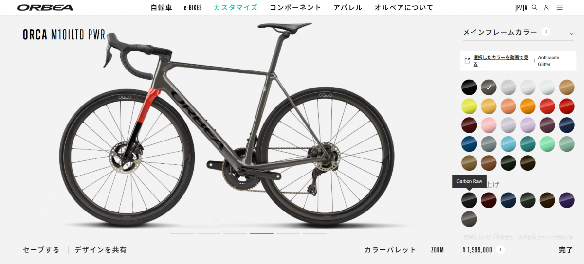 MyOとはスペインの自転車ブランド「ORBEA」が行っているカスタムオーダーサービスのことでアップチャージ不要のカラーオーダーを始め、ハンドルやホイールなどパーツ類の選択など自分好みに車体をカスタムした状態で注文をすることのできるサービスです。