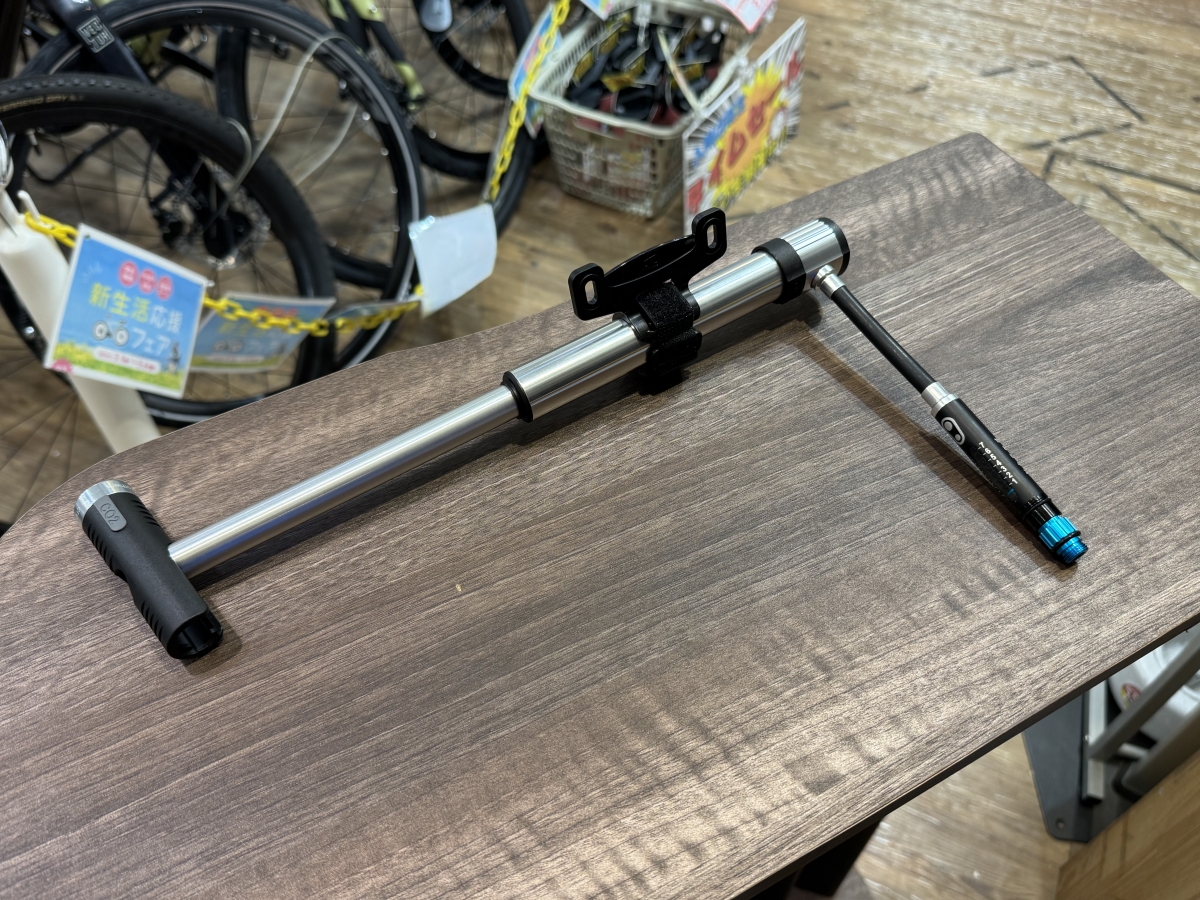 今回ご紹介する携帯ポンプも、7.6barまで対応できるハイプレッシャータイプでありながらハイボリュームタイプでもあるのでMTBからロードまで幅広く対応でき高性能です。