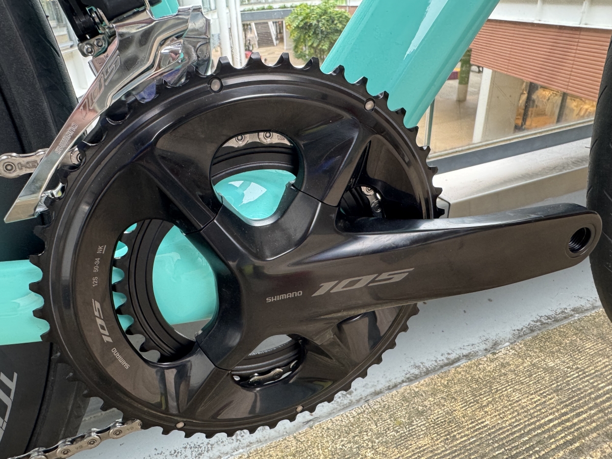 R7100系105は基本アッセンブルがフロント50T/34T、リア11T-34Tで最小ギア比1となっています。