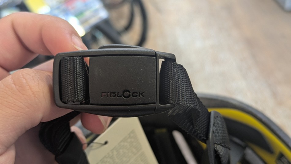 バックルにはFIDLOCKを採用しています。つけるときにはマグネットでパチッとはめるだけで固定されます。外すときには上にスライドしないと外れないようになっているので、固定は簡単でも走行中に外れる心配はありません。
