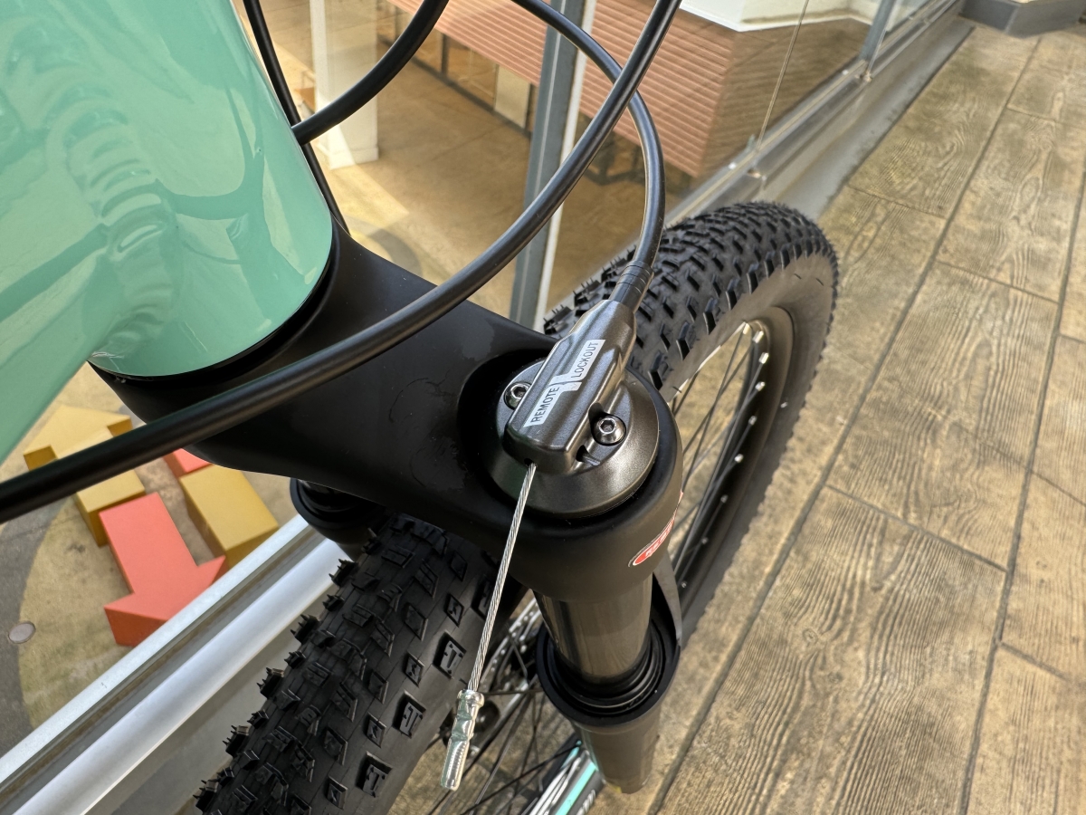ロックアウト機能搭載で、舗装路を走る際にはサスペンションをロックすることが可能で、手元で操作できますよ!