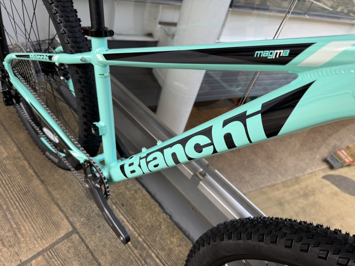 今回入荷したMAGMAも例に漏れず、全面的にチェレステカラーとなっており、BIANCHI好きにはたまらないのではないでしょうか?