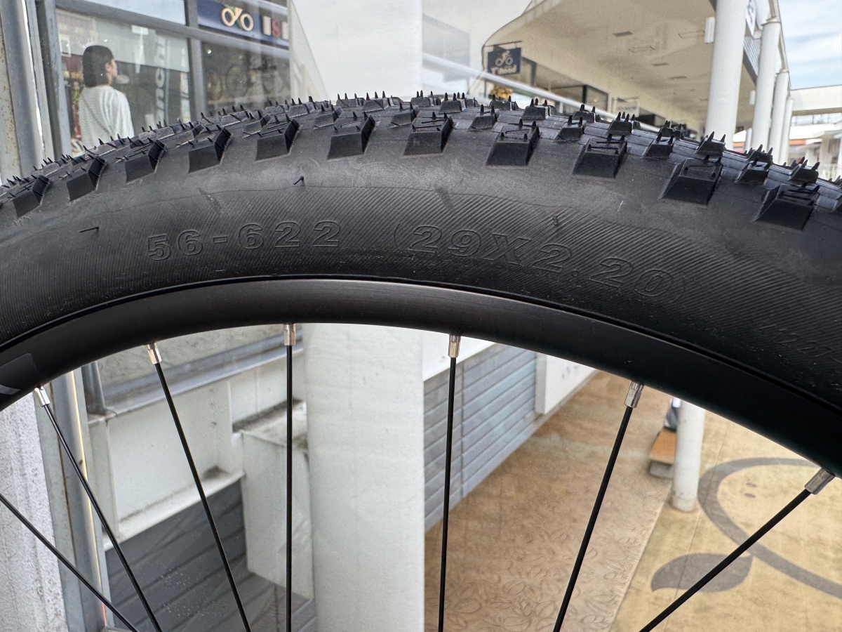 タイヤは29×2.20サイズで舗装路を速度を上げて走りたい場合には良いサイズ感ですね。