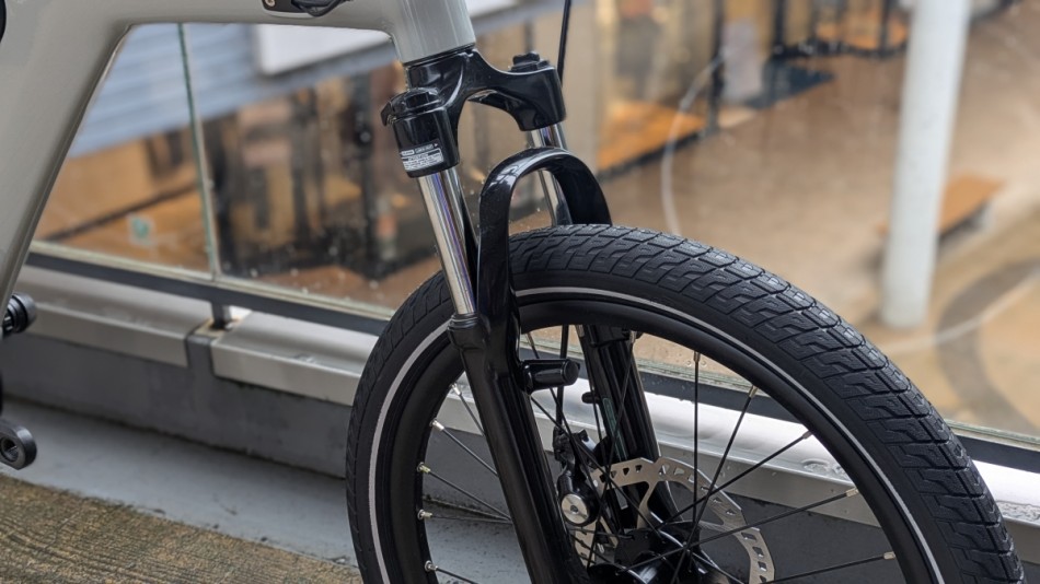 この車体が街乗りにオススメできるポイントとして、前後にサスペンションが装備されています!20インチの小径車で取り回しの軽さがありながらもサスペンションでしっかりと衝撃吸収もしてくれます!フロントサスペンションに関してはロックアウト機能もあるので道の状況などに応じて使い分けることが出来ます!