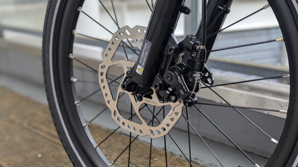 安全性にもぬかりなく、ブレーキは前後機械式のディスクブレーキを採用しています。重量が軽量とはいえE-BIKEなので20キロ弱あります。この重量の車体でしっかりと止まるには制動力の高いディスクブレーキはとても安心です!