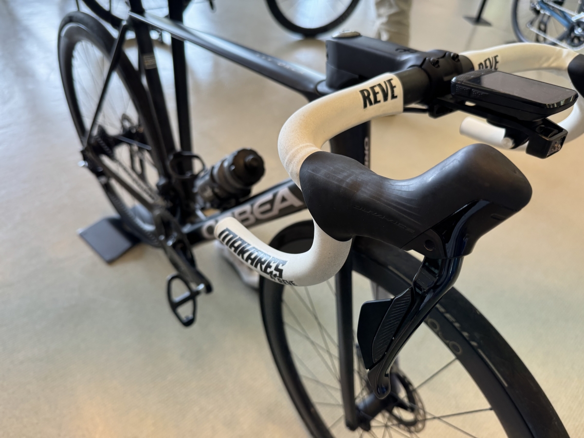 また、アンバサダーとして活動しているREVEのシームレスグリップのMAKARESがハンドルに取り付けてありました。