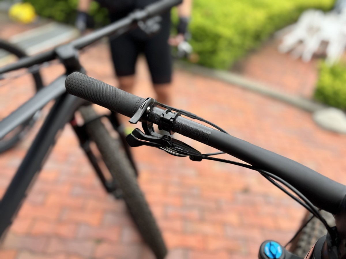 手元にはSquidlockのレバーが取り付けされており、この二つでサスペンションのロックアウトON/OFF,ドロッパーの解除が出来て急にセクションが変わっても
