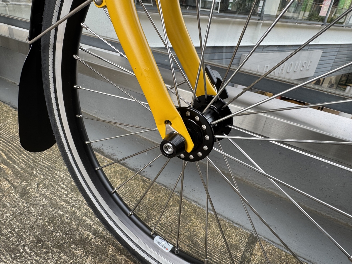 ちょっとした変化ですが、フロントホイールの固定方法が固定ナットではなく、スキュワーに変更されており、パンク修理がし易くなりましたね。