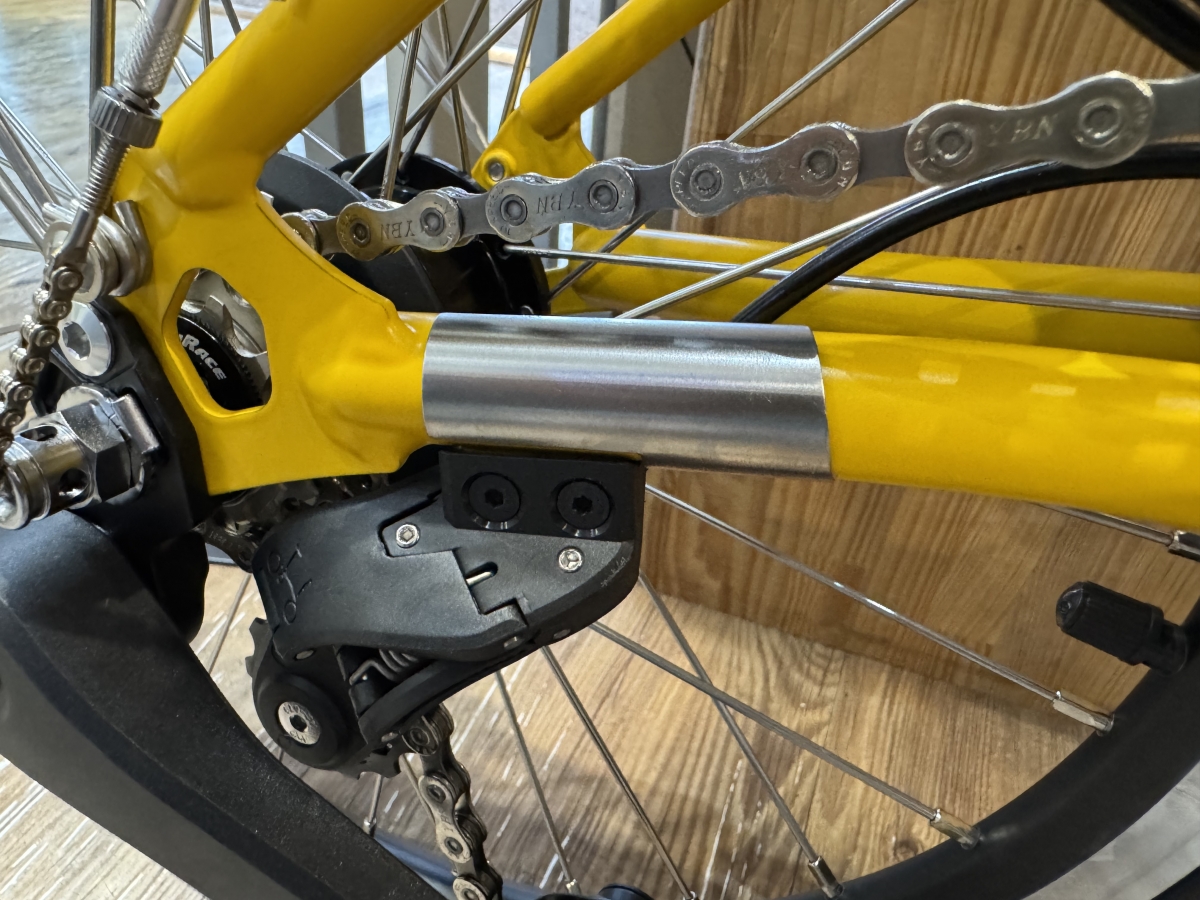 一方、リアフレームは12速化に伴い、P LINE、T LINEの12速モデルと形状を同じにすることで、外装変速段数を2速から4速に拡張し、内装変速3速との組み合わせで12速化が可能になりました。