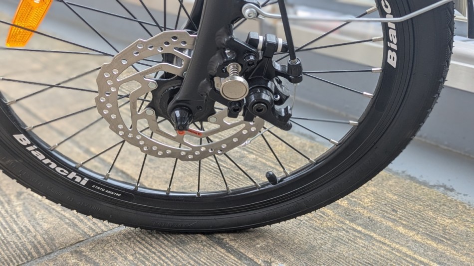 ディスクブレーキによってしっかりと安全性も高いです!ワイヤー式なので油圧式に比べると引きは重いですがしっかりと効いてくれます。