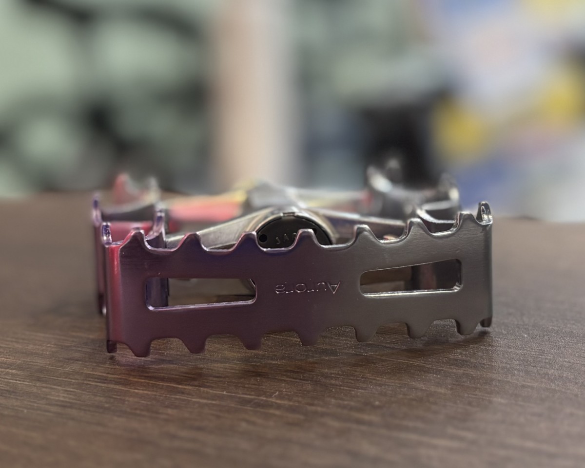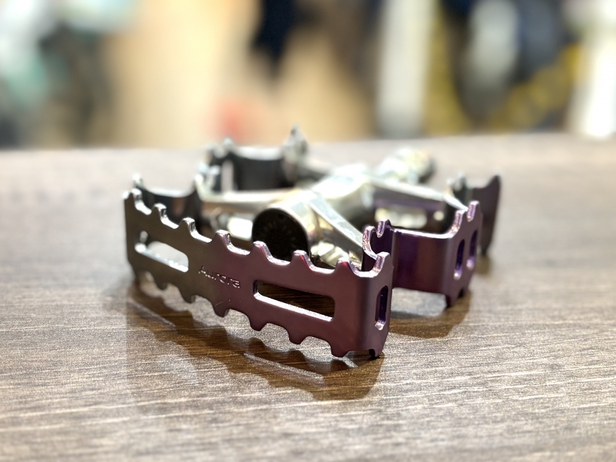 複数個のプレス機で折り曲げられ成形されたペダルでこの波打つような形状がオーロラを連想させることからAuroraという名前が付けられました。