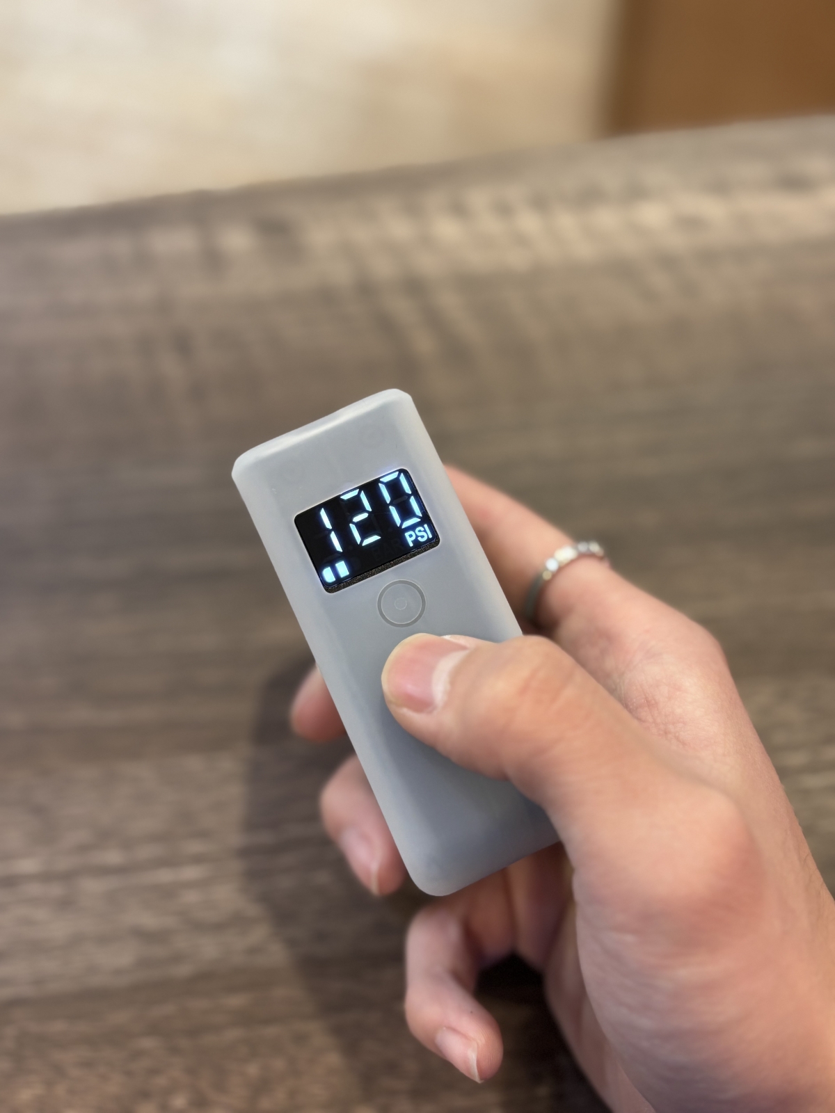 空気圧を設定してボタンをポチっとするだけで空気が入っていくのでハンドポンプみたいに疲れることも無く、CO2ボンベの様に失敗する事もありません。