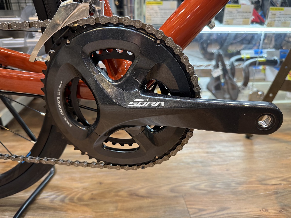 特に、クランクまでSORAグレードに統一されており、変速性能や剛性感は間違いないでしょう。