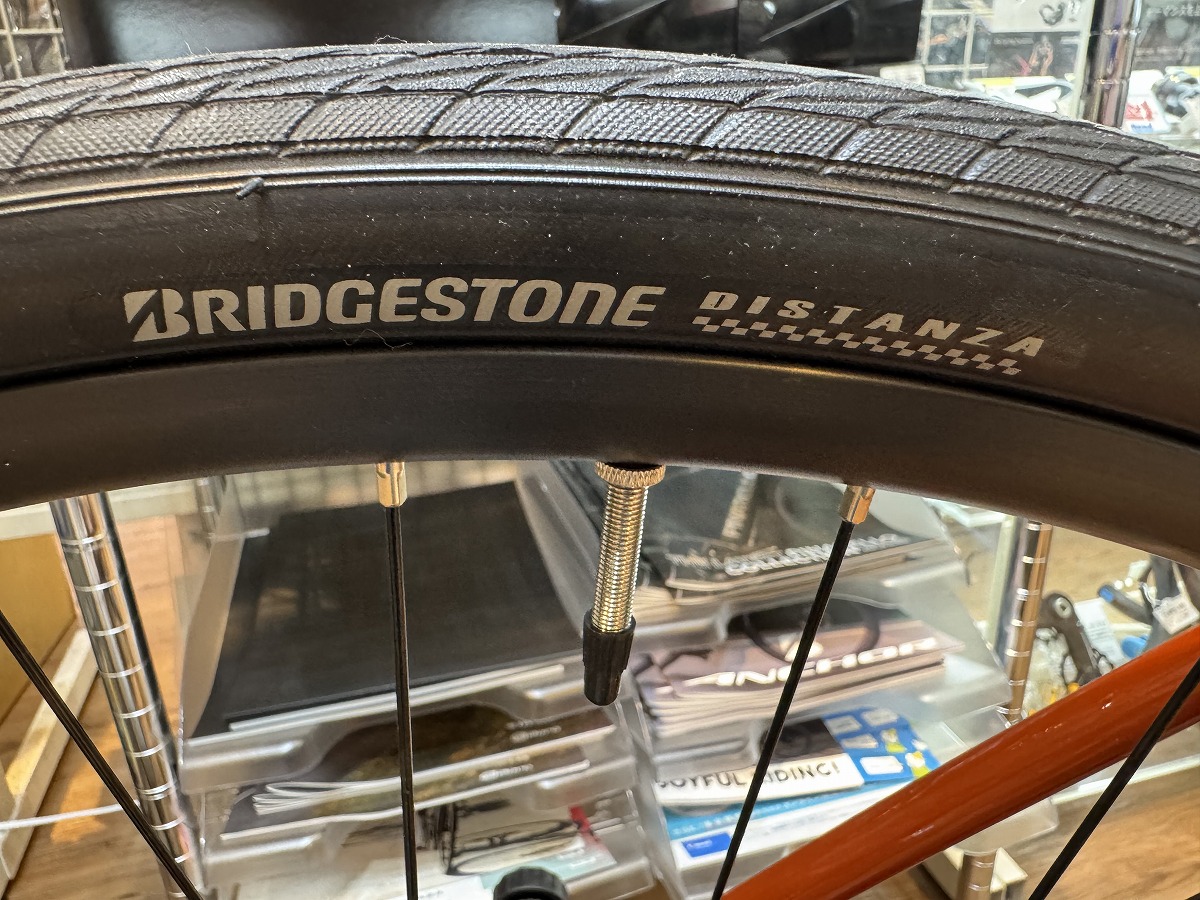 タイヤはBRIDGESTONE DISTANZA 700×32Cを採用。
