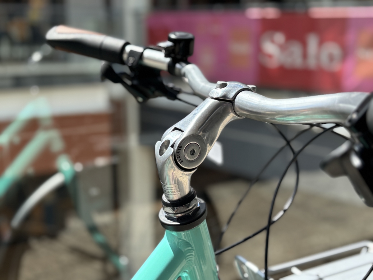 BIANCHIではありますが形がほぼママチャリです、これなら街乗りで使ってても一般車のように使えるので盗難のリスクも減りそうで安心してお使いいただけます。