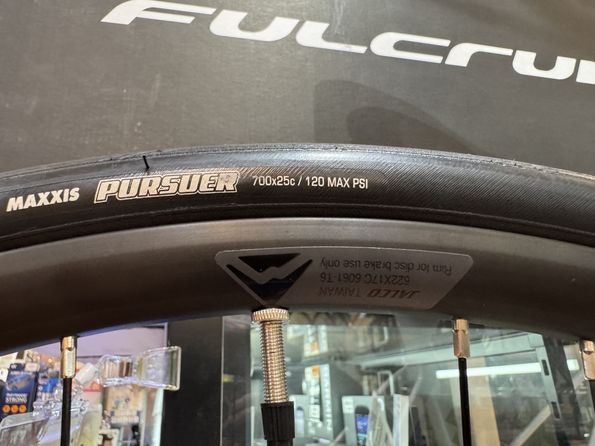 リム幅17Cと現行のホイールとしては狭めで、25Cや28Cのタイヤがギリギリというリム幅ですね。