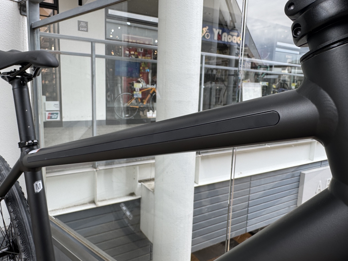 街乗り用のアーバンバイクという事で、フレーム側面にはラバー素材を張り付けてあり、街中で構造物に立てかけた際に傷が付きにくい仕様になっています。