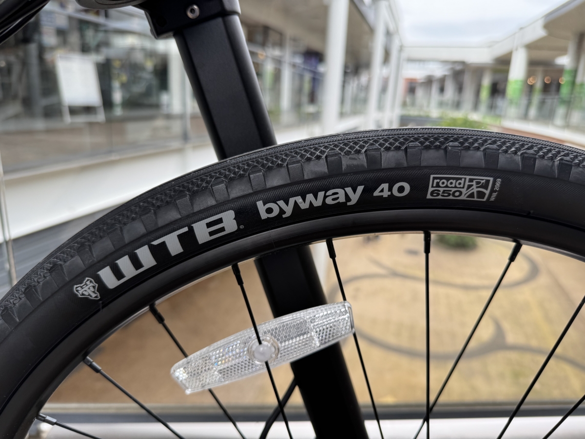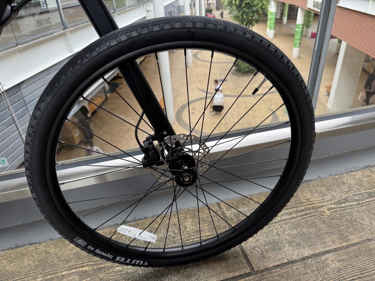 700Cより系の小さいホイールに、太めのタイヤを履かせることで、エアボリュームを稼ぎつつも漕ぎ出しが重くならないような工夫でしょうか。