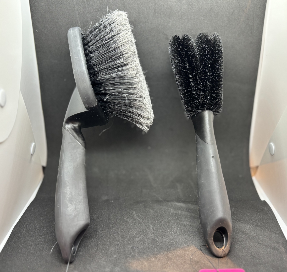 二股に分かれているブラシはタイヤなどを洗うのに適していますね。