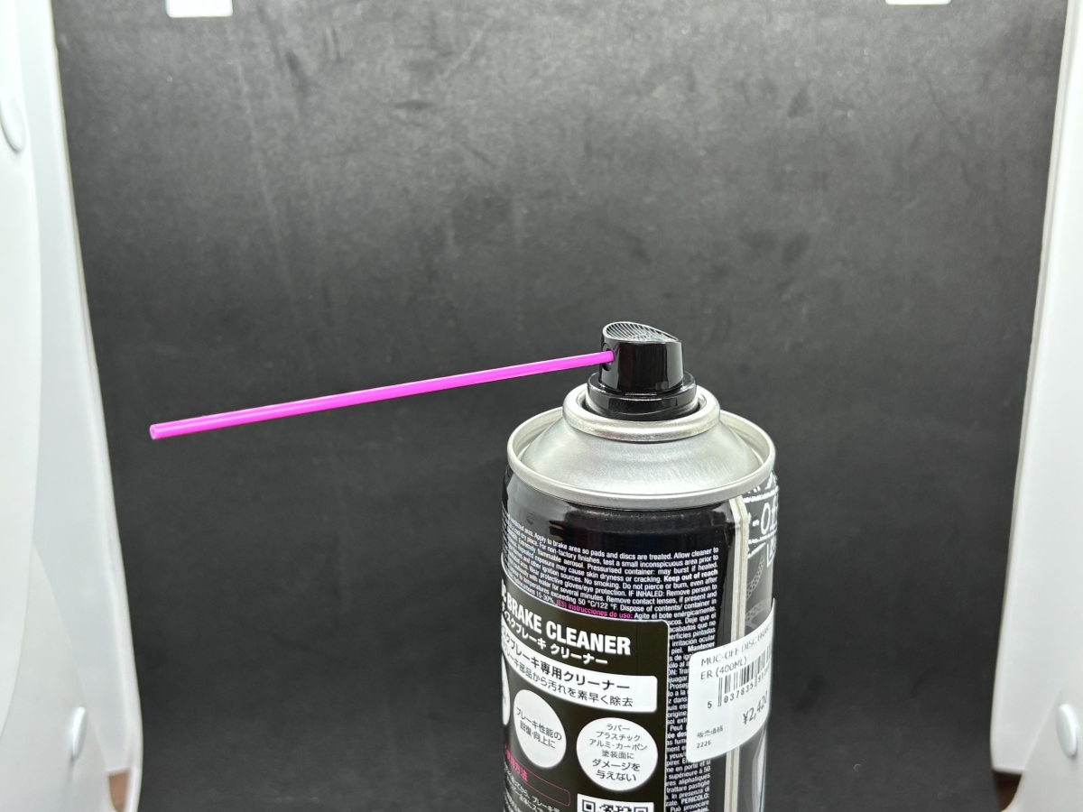 付属のノズルを取り付けてブレーキ周りに噴射して拭き取るだけ!