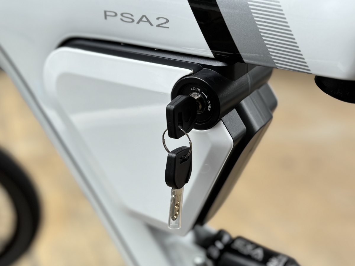 バッテリー取り外しの際の鍵穴と充電口は元々左側(鍵側)にありましたが新型になって別々の位置になりました。