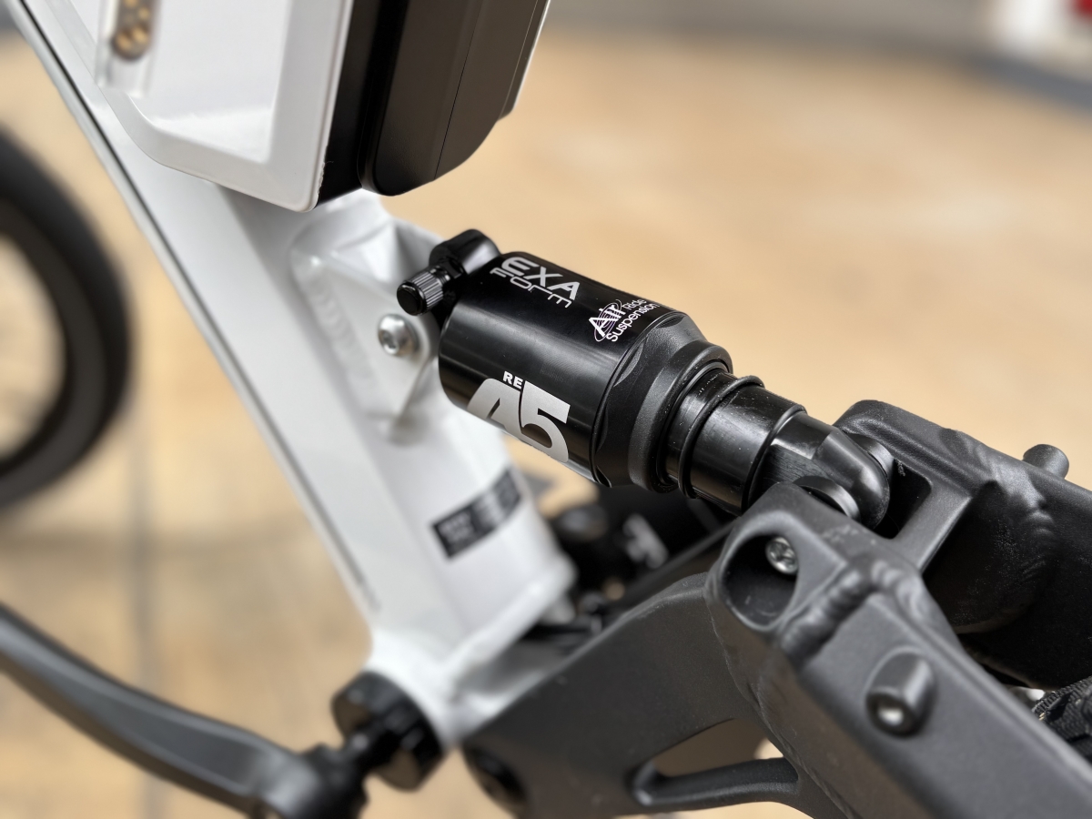 エアーサスペンションになるので空気圧でトラベル量の調整が可能です。空気圧の調整には専用のポンプが必要になるので別途ご用意ください。