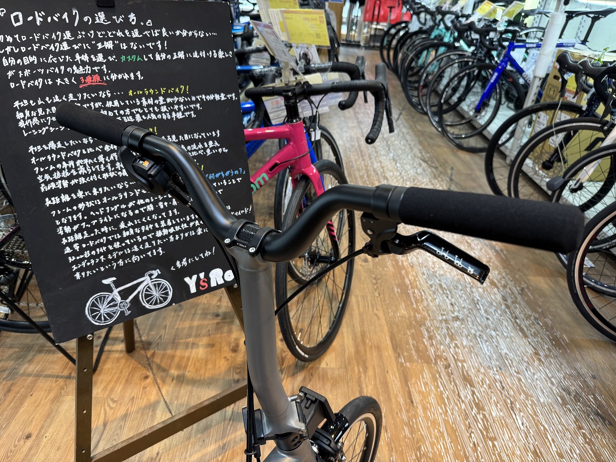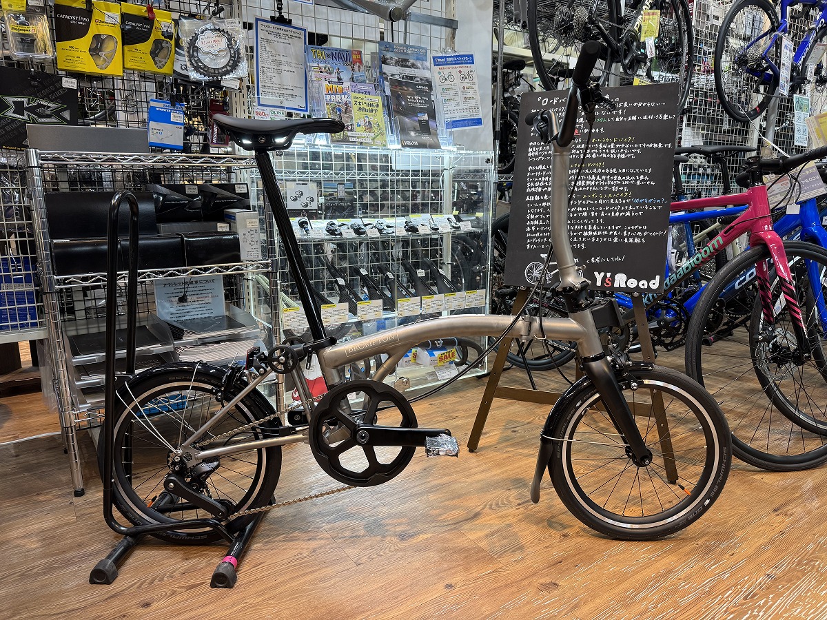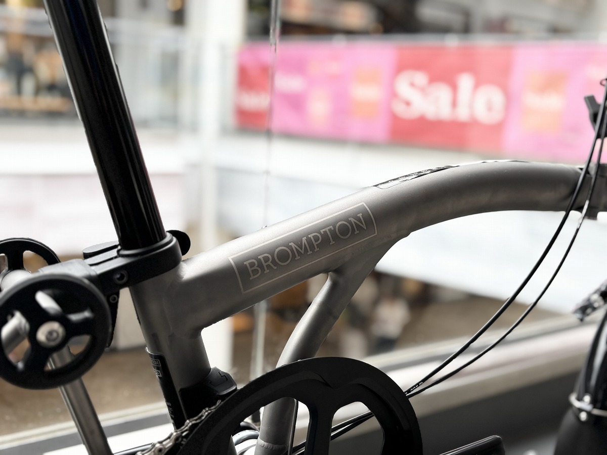 当店スタッフも複数人所有しておりますBROMPTON。そのホイール径からは考えられない程の走行性能を持ちサイクリングにも十分使える折り畳み自転車です。何種類かグレードがあり、フレームの材質や仕様などが変わってきます。今回紹介するのは最上位モデル”T-LINE”で唯一無二の折り畳み自転車とも言える一台です。