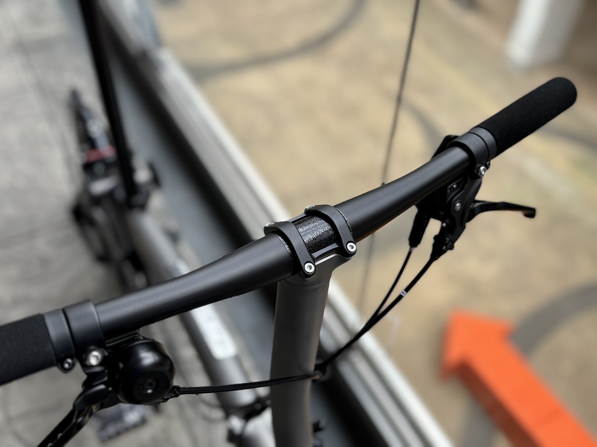ハンドルバーもカーボン製の物を採用。1枚目がSハンドル、2枚目がMハンドルです。C LINEやP LINEとは、ハンドルバーの径が異なるうえに固定方法も異なります。ちらの方が交換作業がやりやすいのでメンテナンス性にも優れています。