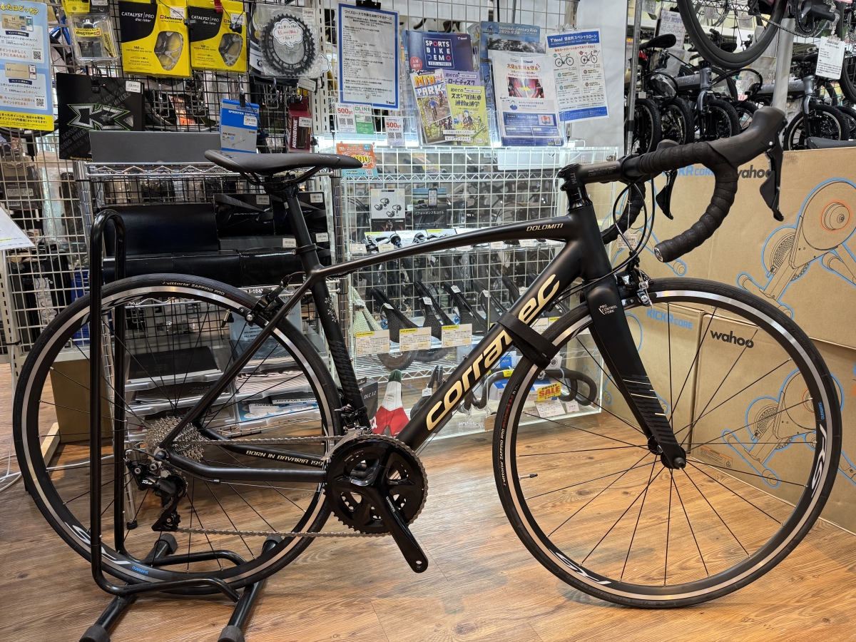 メーカーはドイツのcorratecの定番アルミロードのDOLOMITIシリーズのリムブレーキとディスクブレーキが1台ずつです!