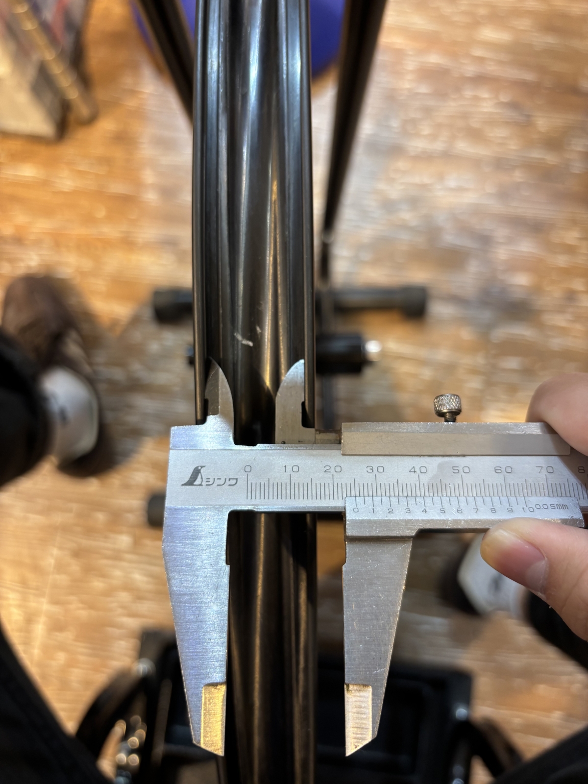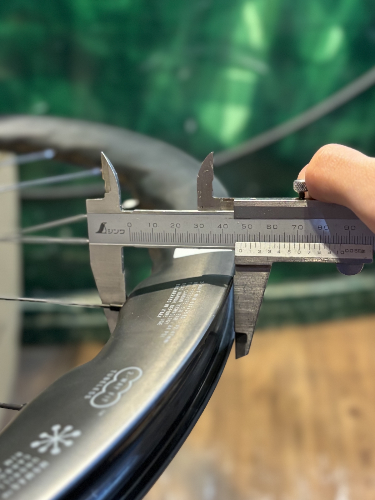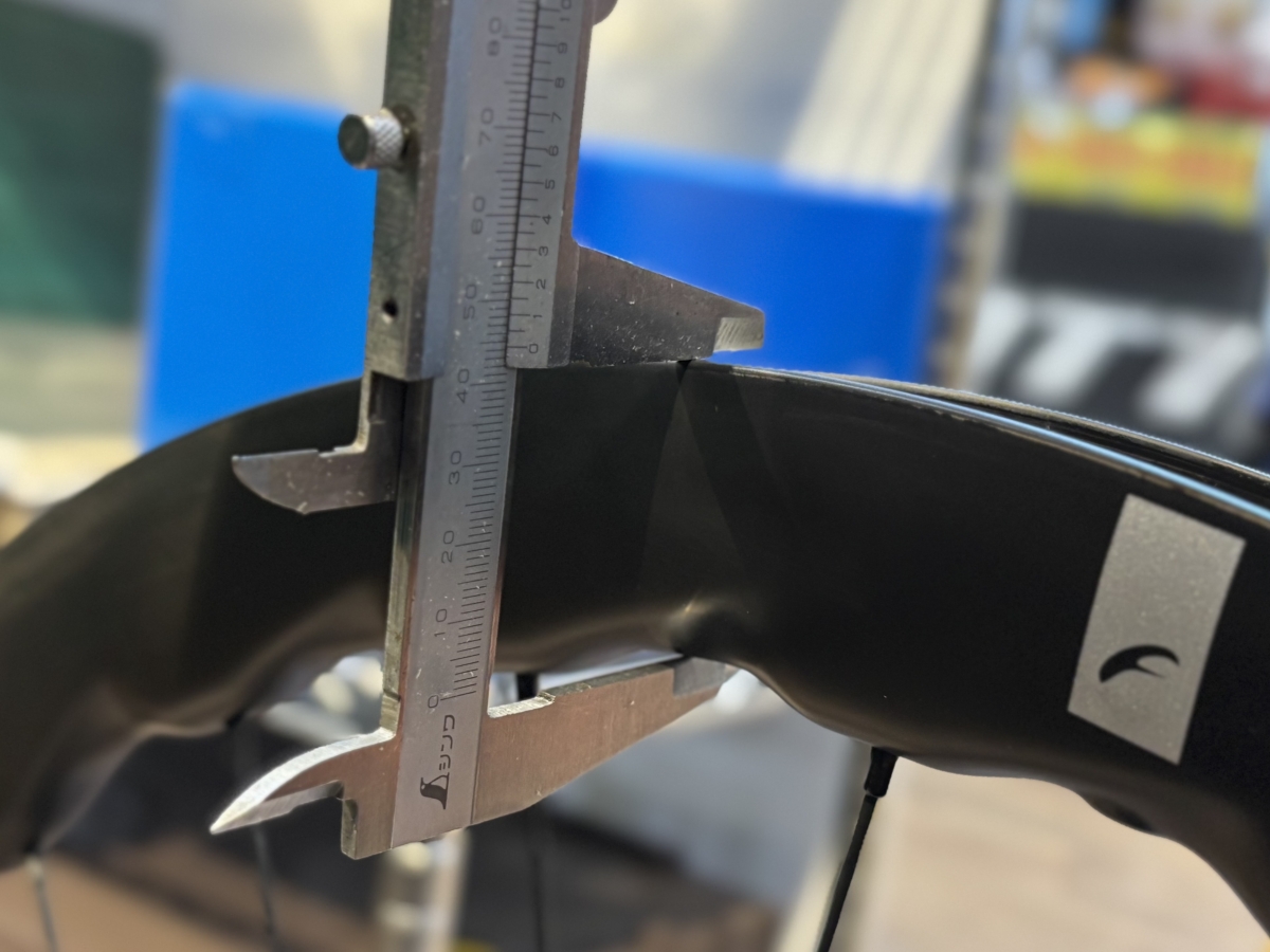 やや見にくいですが低いところで42mm、高いところで47mmハイトになっており、様々な高さのリムハイトがある中。それぞれの快適性と汎用性のバランスを取る為に