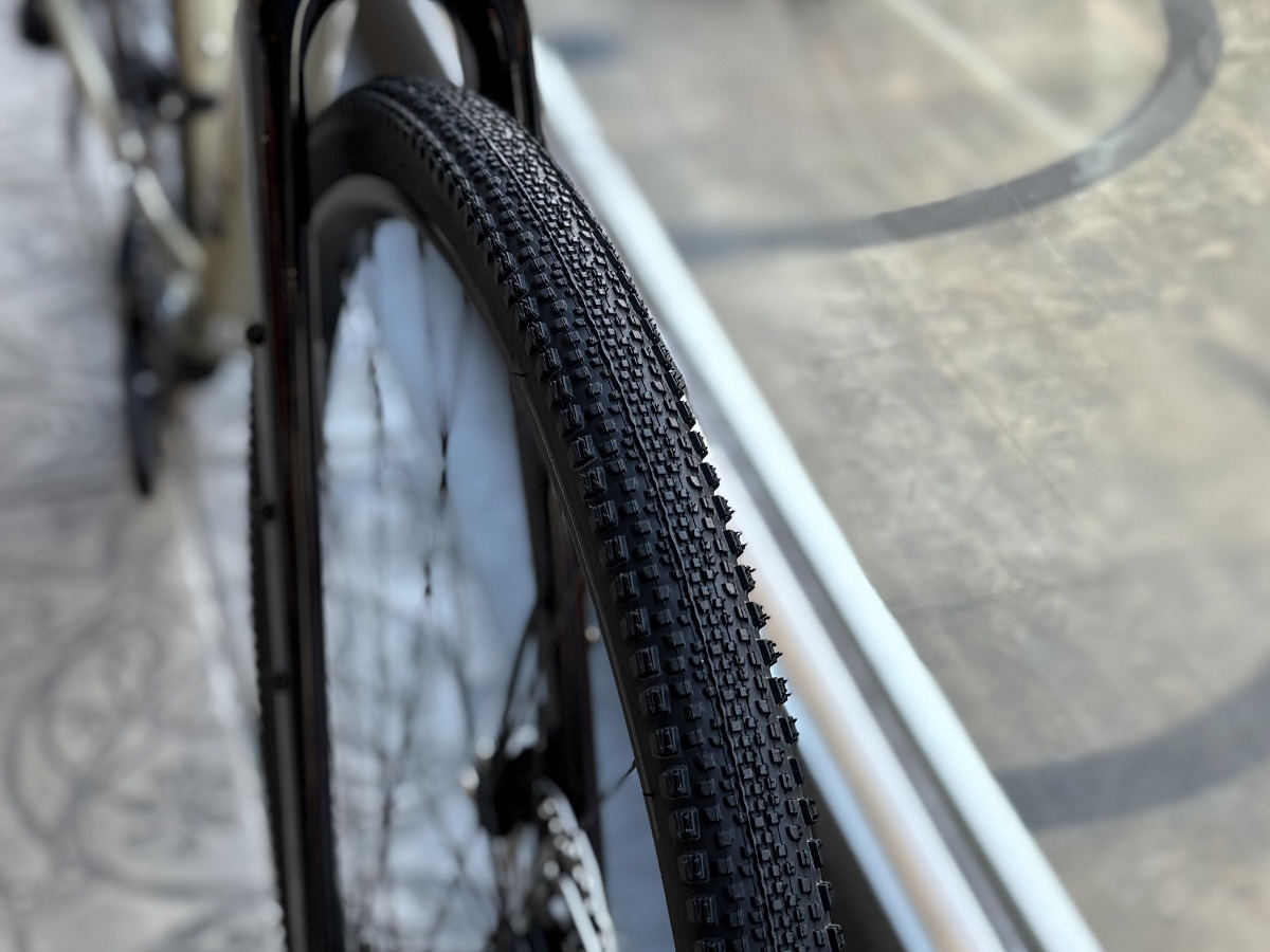 ノブもしっかり付いているのでグラベル区間でもしっかりとタイヤが路面を掴んでくれます。