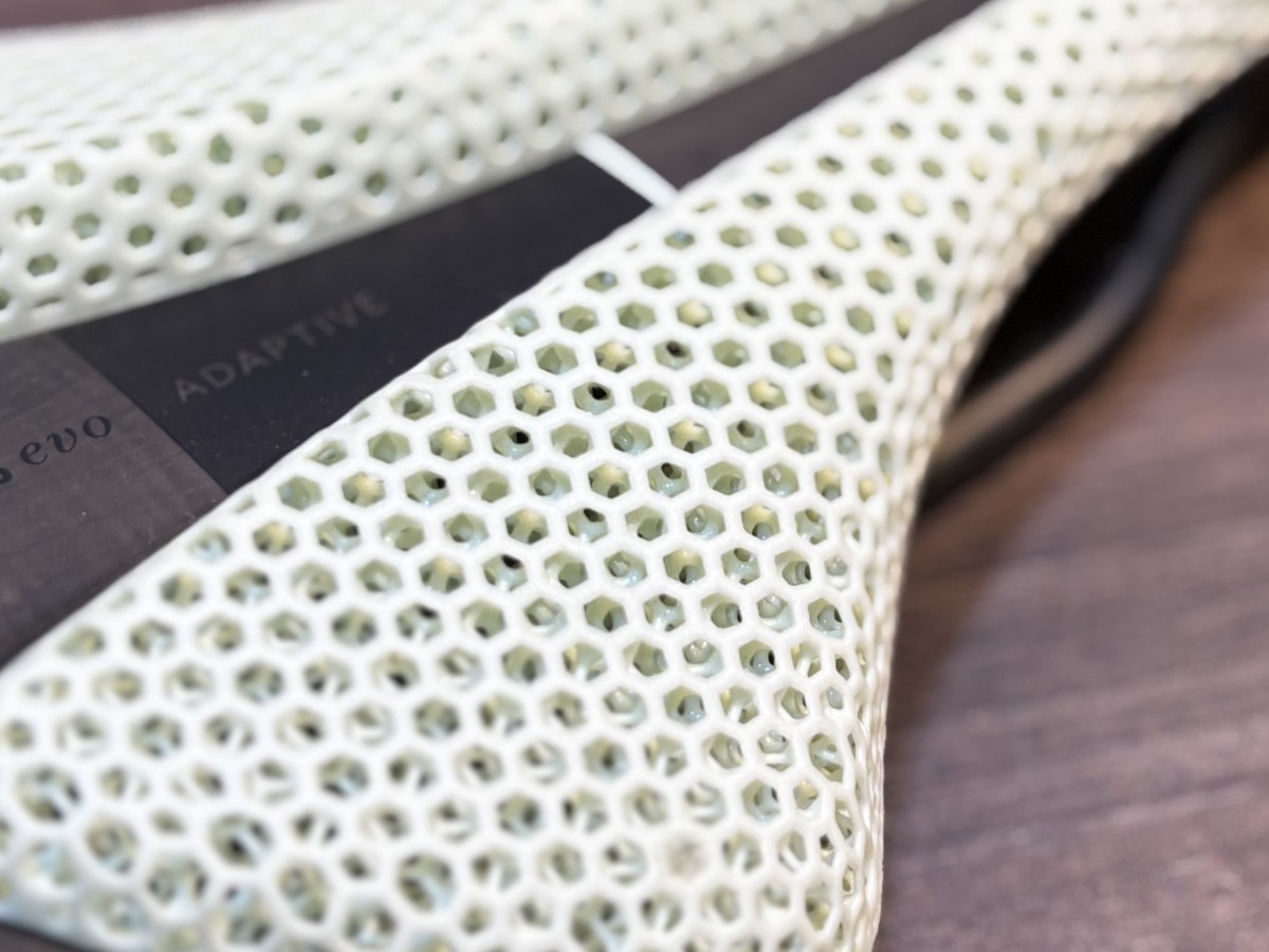 アメリカのカーボン社の3Dプリンティング技術を用いて作成したこの六角形の構造はサドルの前後にかけてシームレスにクッション性をコントロールし