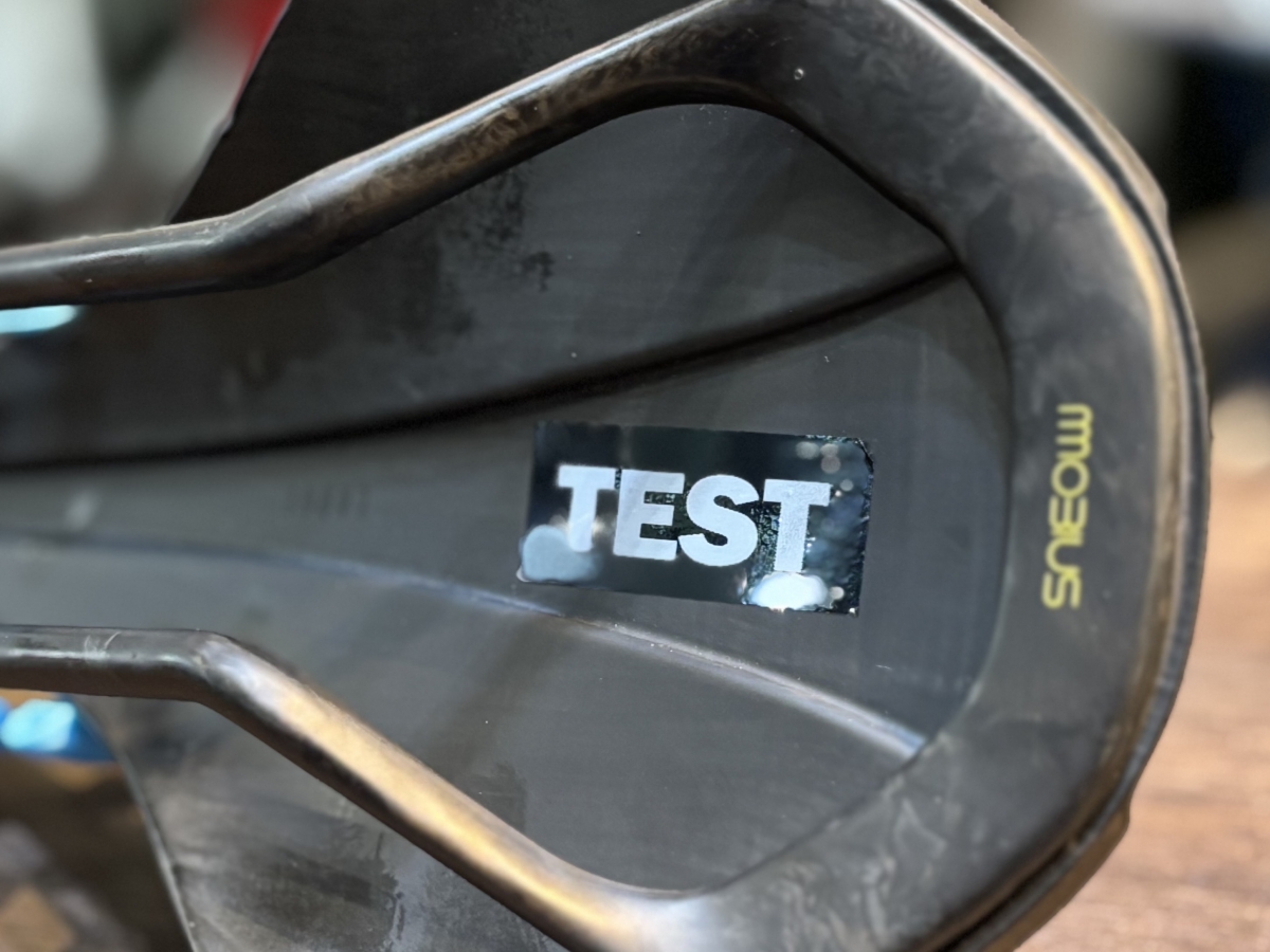 裏面にTESTと書いてありますがこれはお試し用のサドルをそのまま販売しているので多少使用感がありますよ~ということです。