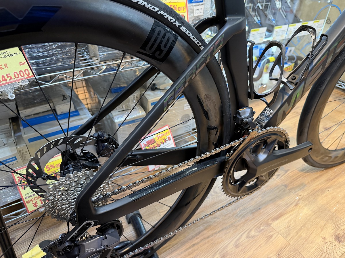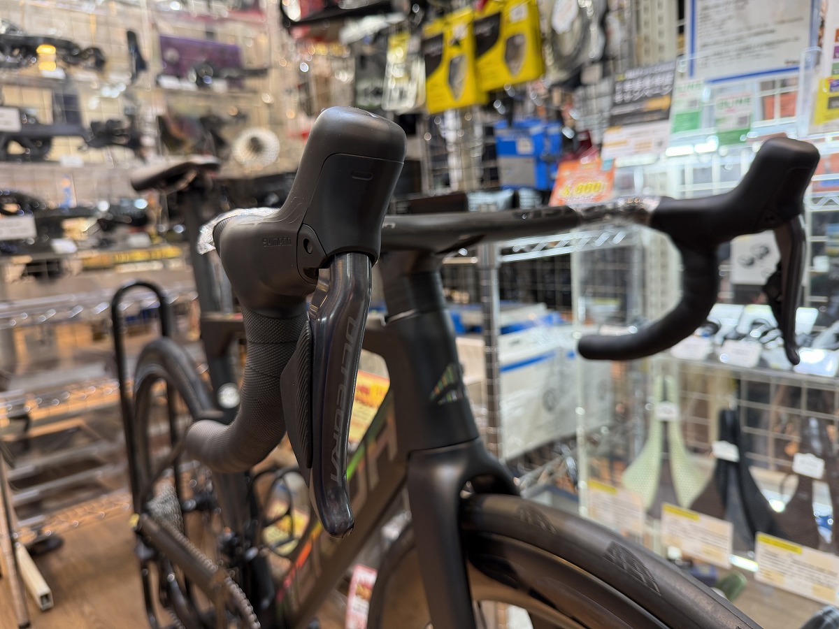 コンポーネントにはSHIMANOのR8100系 Ultegraの2×12速電動変速を採用。