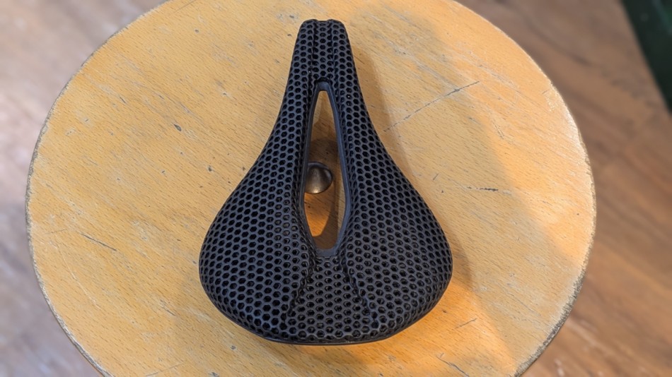 比較的網目の細かさが大きいタイプになっています。レール素材はカーボンですが3Dプリントサドルは使ってる材質上気持ち重さは出てしまいます。ただサドルとしては比較的軽量な部類に入るかと。