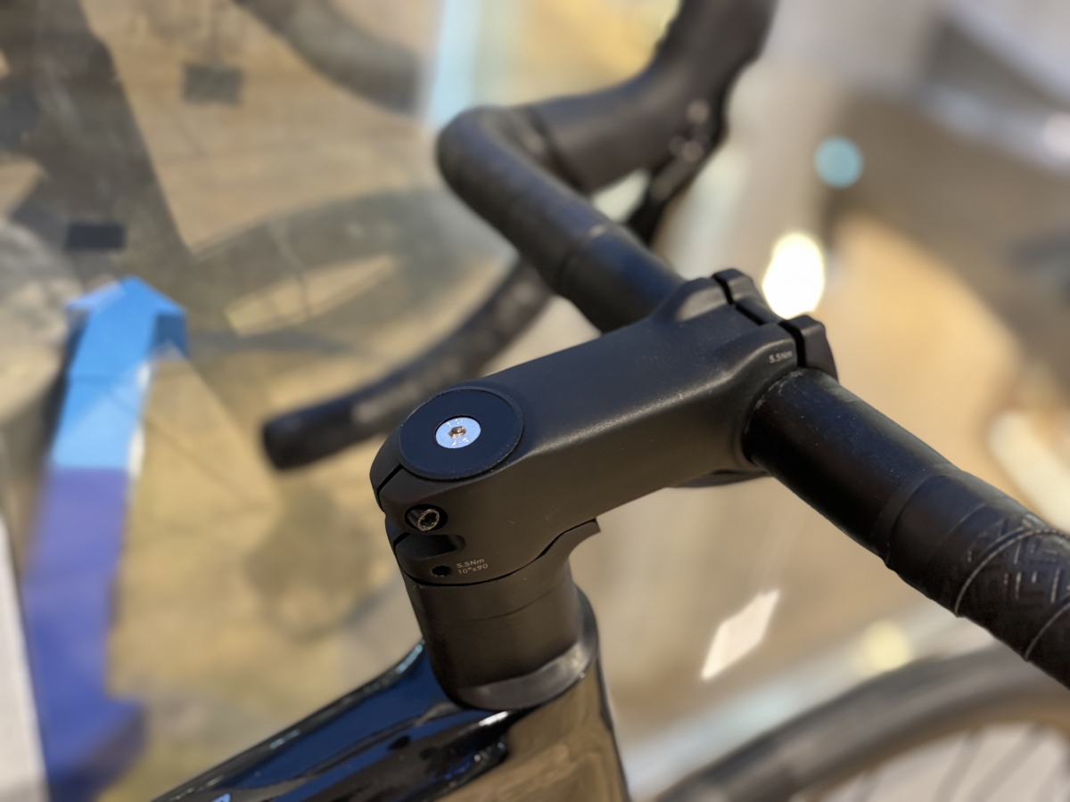 ステムは純正の物を採用しステム下よりケーブルがフレーム内に内装されています。
