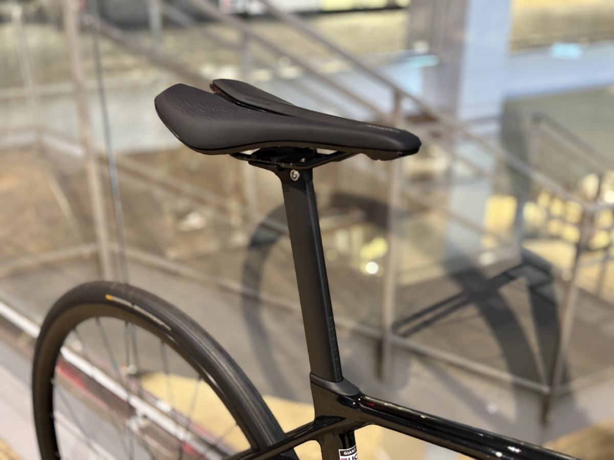 軽量モデルという扱いにはなっていますがシートポストはD型のエアロ形状をしているので空力性能もこの細身の見た目よりかは優れています。