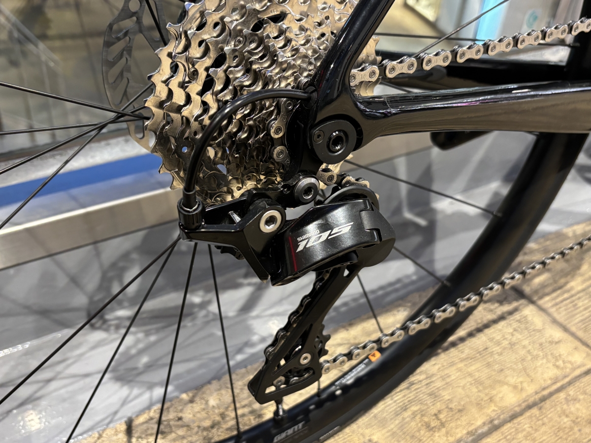 答えはギア比ですね。フロント50-34T/リア11-36となり最小ギア比が1を下回る驚異的な軽さとなります。