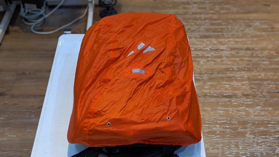 何と下部のポケットにはレインカバーが標準装備されています!急な雨でもサッと取り出して装着することが出来るので中の荷物を雨から守ってくれます!