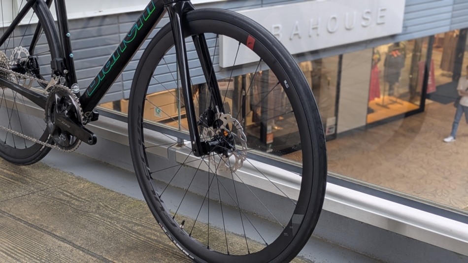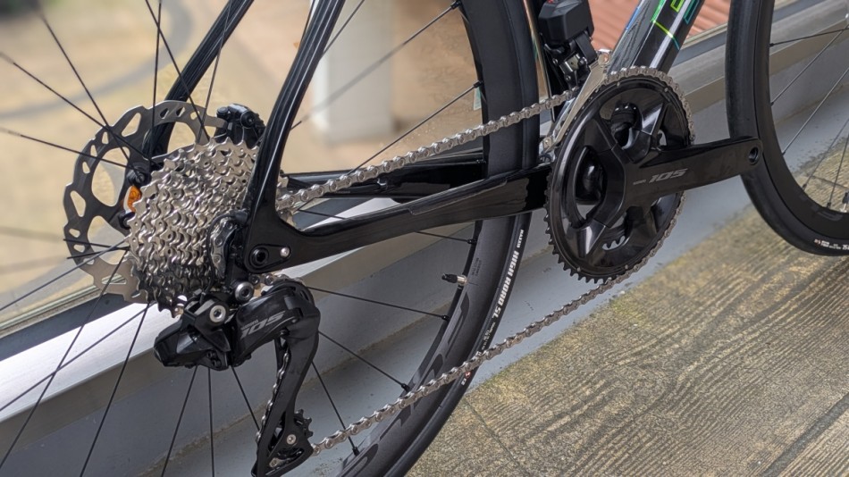 メインコンポーネントには105Di2をチョイスしました。電動変速によって素早いシフトチェンジが可能で価格も抑えられたモデルになります。
