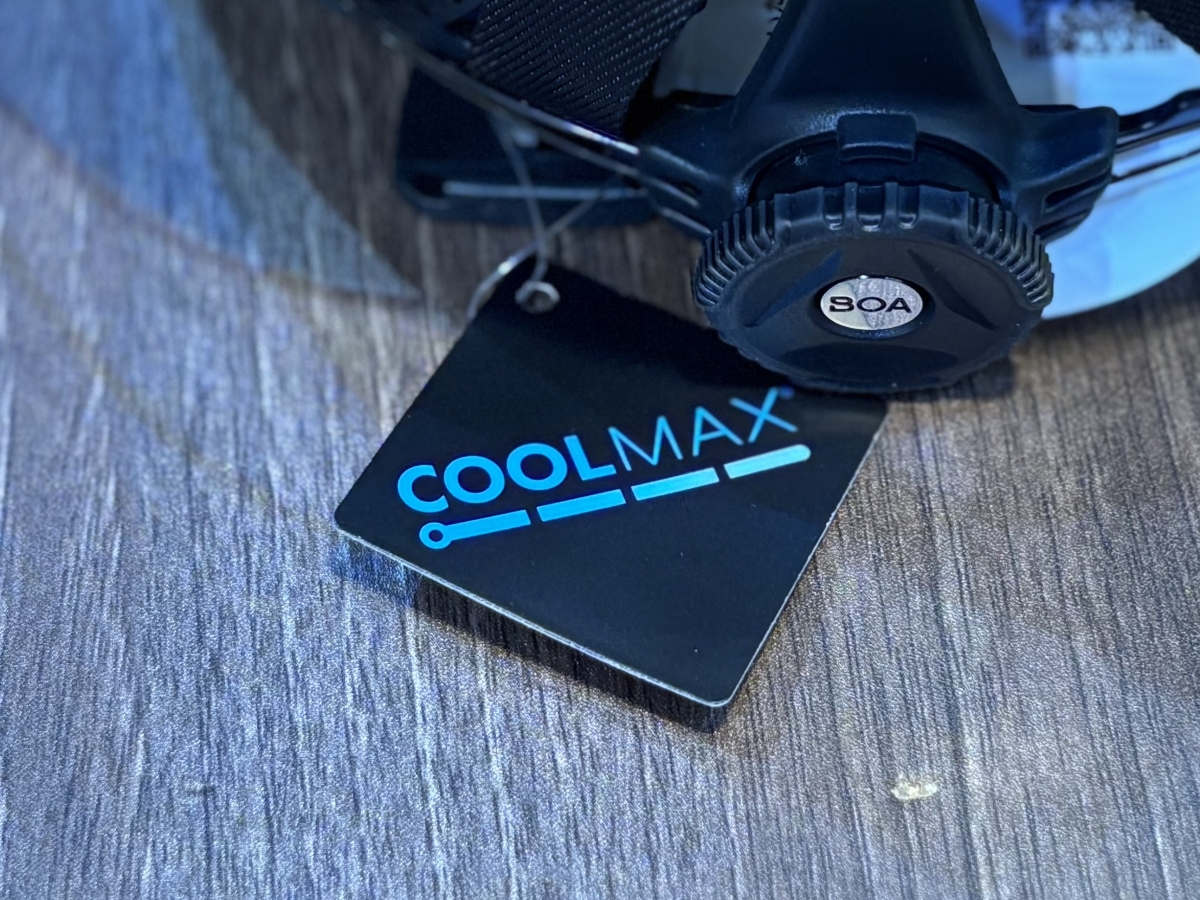 頭部とヘルメットシェルとの間に空間を設け、接触面積を減らして通気性を向上。「COOLMAX®」素材をパッドに採用し、蒸れにくく快適。