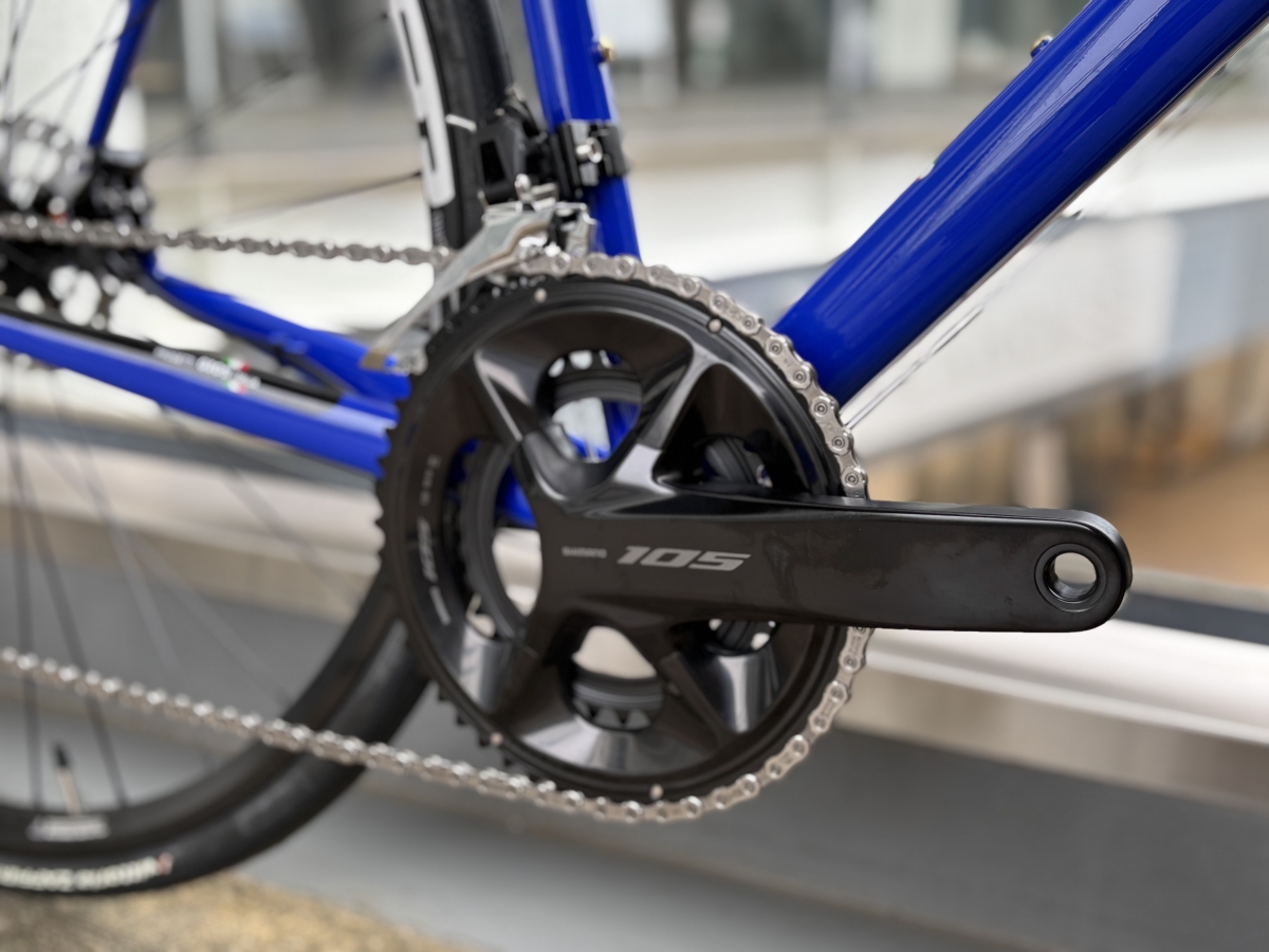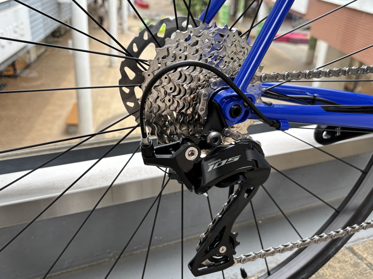 コンポーネントはブレーキも合わせてSHIMANO 105の機械式(ブレーキは油圧です。)