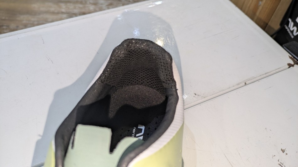 かかとにはかなり下の方まで滑り止め加工が施されています!走行中にシューズの中で足が動くことによるロスを減らしてくれます。シューズ自体もかかと部分が他のところよりもしっかりしているのでホールド感も良さそうです。