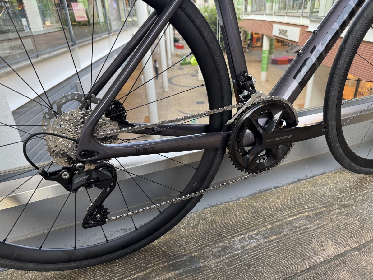 また、105のリアスプロケットは36Tも用意があるので、最小ギア比1切りのアッセンブルも可能ですので、心配な方はご検討ください。