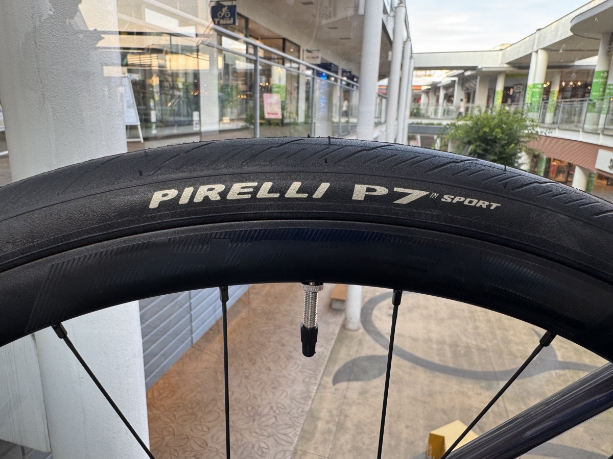 ホイールはVELLOMANのV30Rアルミホイール、タイヤにはPIRELLI P7の700×32cをアッセンブルし、初期装備としては十分なグレード感ですね。