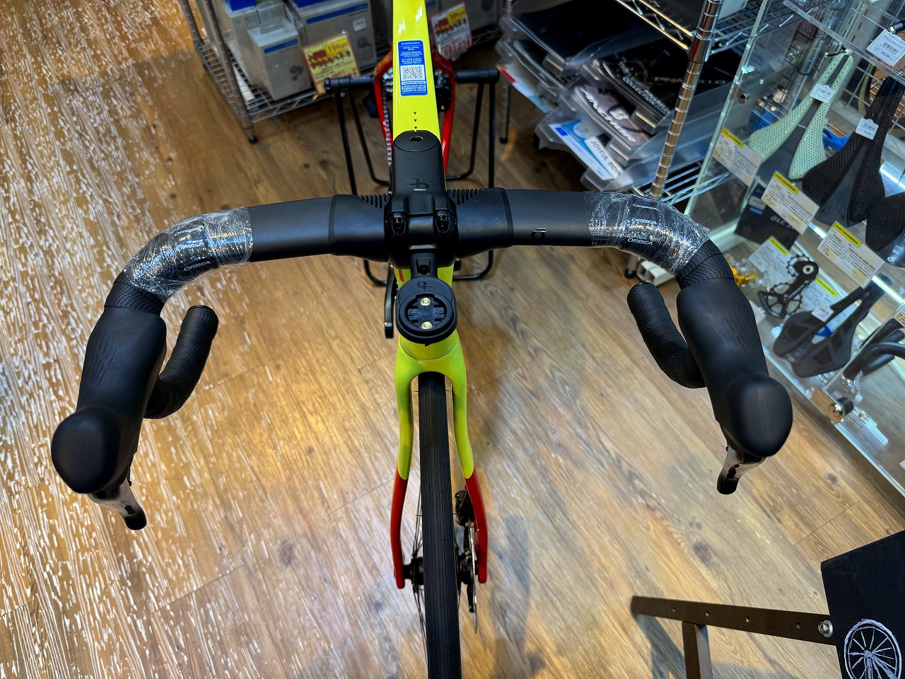 ハンドルはツーピースタイプのステム下内装型で、元々在庫している車体と一緒ですね。